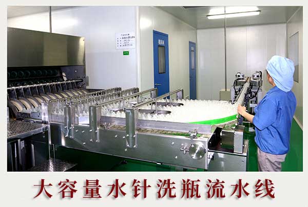 該車間小容量注射液生產(chǎn)線——安瓿洗烘灌封聯(lián)動線生產(chǎn)機組,為國內(nèi)較為先進的水針聯(lián)動機組,可生產(chǎn)5毫升、10毫升兩種規(guī)格的產(chǎn)品,勞動效率高,每小時穩(wěn)定產(chǎn)量能達到20000支。